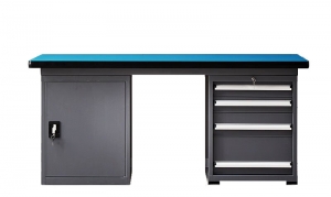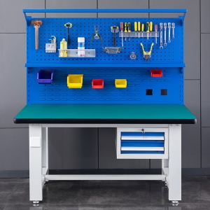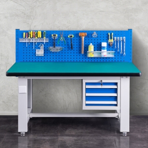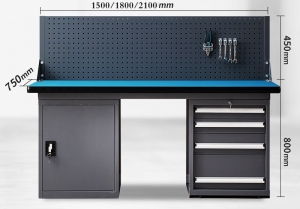 重型防静电工作台1斗1门+4抽柜+单挂板