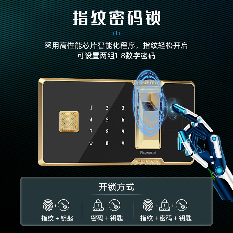 产品名称:通双节带抽保密柜电子指纹密码锁
