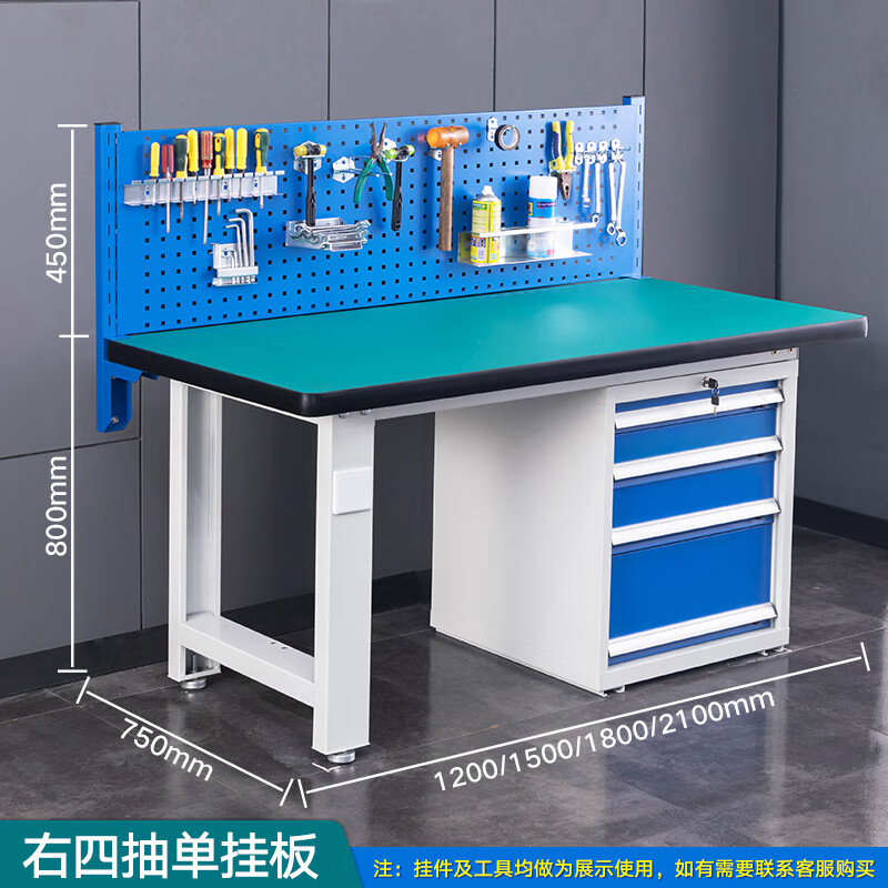 重型防静电工作台右4抽+单挂板